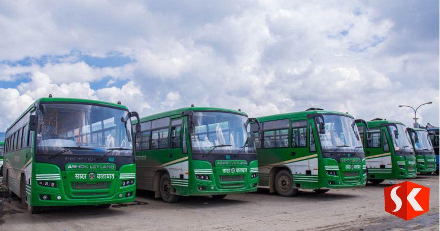 काठमाडौँ । सरकारी लगानीको साझा यातायातले आजबाट बस सेवा शुरु गर्ने भएको छ। साझाले २६ वटा बसमार्फत् काठमाडौँका अधिकांश रुटमा सेवा शुरु गर्न लागोको हो। आज पहिलो दिन सरकारले तोकेअनुसार नै सिटभन्दा आधा यात्रु राखेर बस सञ्चालन गर्न लागिएको साझाका व्यवस्थापक महेन्द्र पाण्डेले बताए।