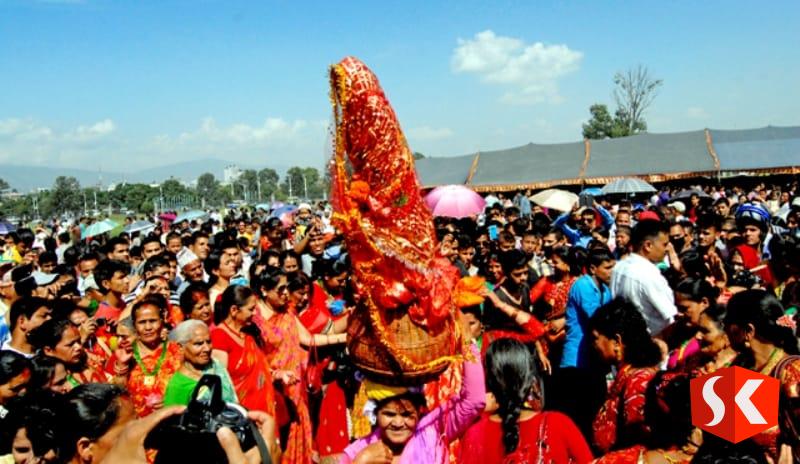 “यो पर्वका लागि श्रावण शुक्ल पञ्चमीका दिन केराउ, जौ, मस्याङ, मास र गुराँसको गेडा भिजाएर राखिन्छ, यसलाई बिरुडा भनिन्छ, अष्टमीमा भगवतीलाई पूजा गरेर प्रसादका रुपमा बिरुडा चढाइन्छ, भक्तजनलाई पनि प्रसादका रुपमा बिरुडा नै बाँडिन्छ, पाँच किसिमका गेडागुडी भिजाउने दिनलाई बिरुडा पञ्चमी भनिन्छ”।