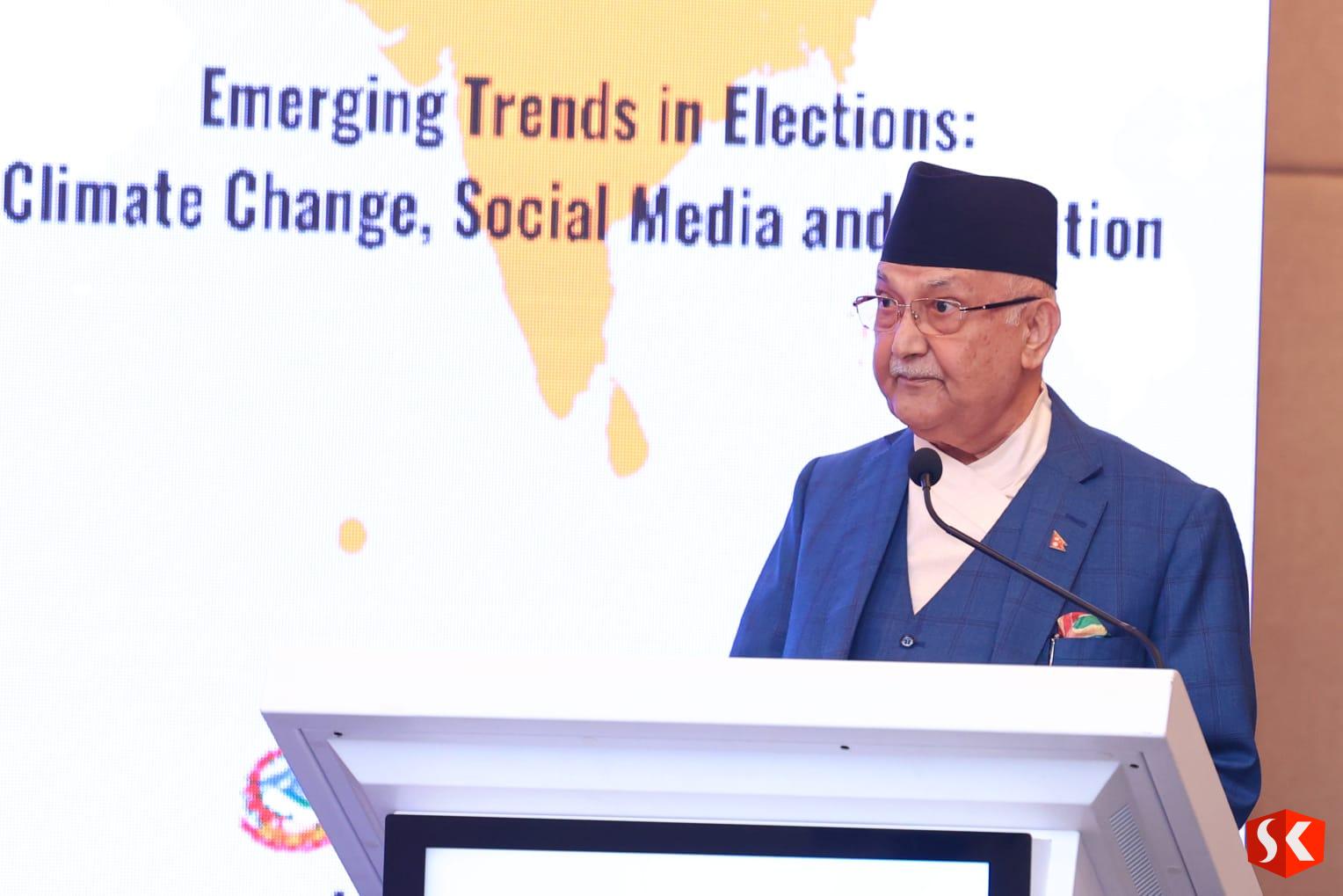 हिमालहरू पग्लिने, समुद्रको तापक्रम बढेर जलवायु परिवर्तनमा पार्ने प्रतिकूल असरका क्रमसँगै मानव जीवनमा आउने चुनौतीका बीच लोकतन्त्रको अभिन्न अंगका रूपमा रहेको निर्वाचन प्रक्रियालाई अगाडि बढाउनु साझा दायित्व भएको प्रधानमन्त्री ओलीको भनाइ थियो ।