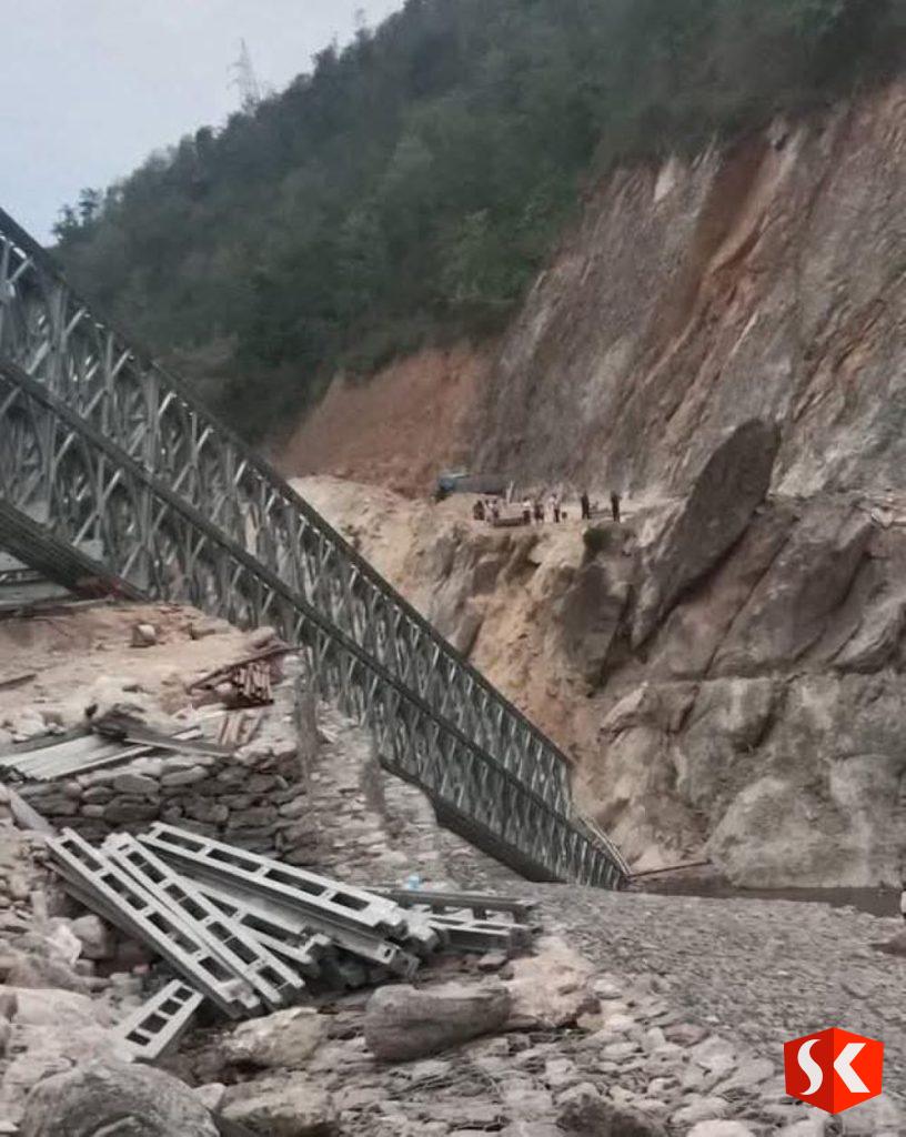 शनिबार ७० मीटर लामो सिङ्गल स्पानको मोडुल ब्रिज जडान गरि वारपार गर्ने क्रममा भाँचिएको थियो । नेपालमा पहिलो पल्ट ७० मीटर लामो मोडुलर ब्रिज जडानको काम भईरहेको थियो ।
