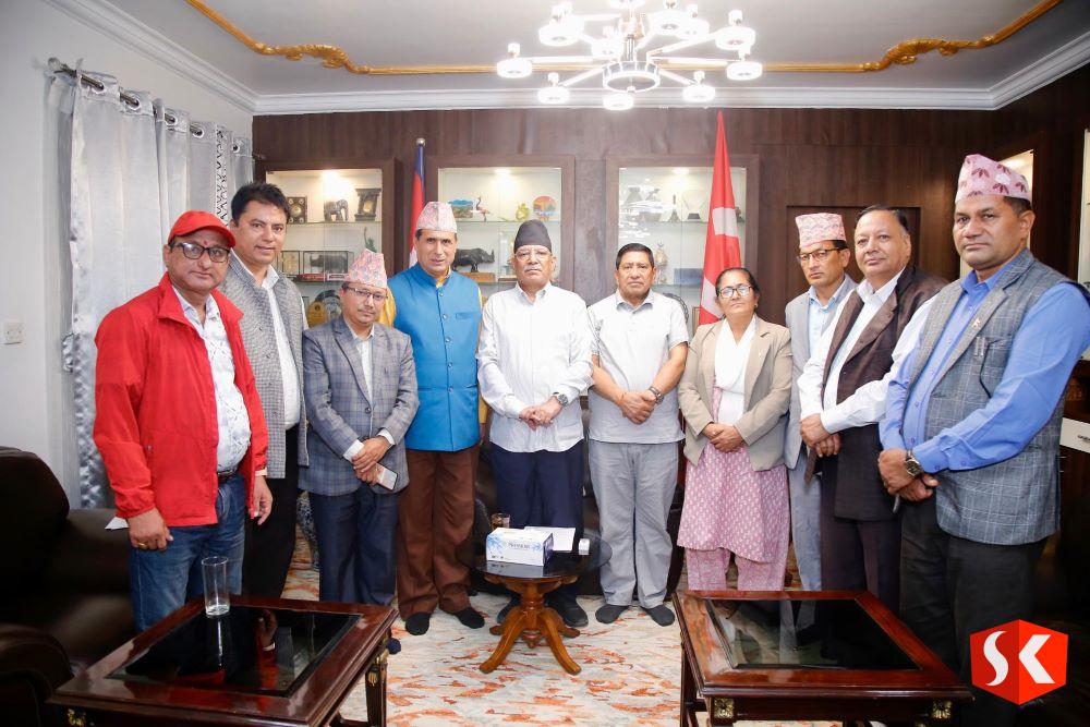 काठमाडौं । नेपाल शिक्षक महासंघका पदाधिकारीहरूले आज नेपाल कम्युनिस्ट पार्टी (माओवादी केन्द्र) का अध्यक्ष तथा प्रमुख प्रतिपक्षी दलका नेता पुष्पकमल दाहाल ‘प्रचण्ड’सँग उहाँकै निवास खुमलटारमा भेटवार्ता गर्नुभयो।