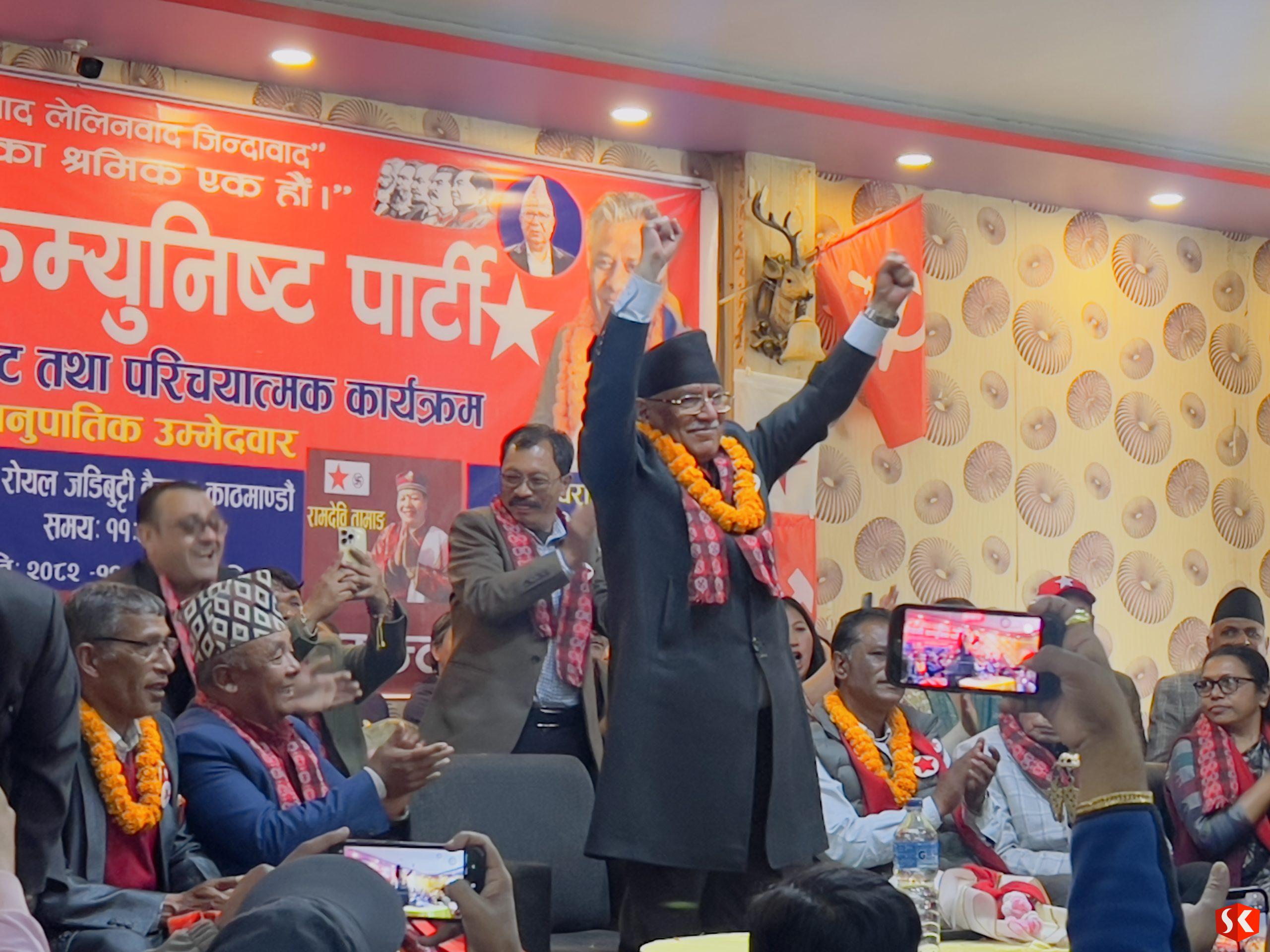 प्रमुख अतिथि संयोजक प्रचण्डले उमेदवारहरुलाई जीतको शुभकामना दिएका थिए भने उमेदवारलाई जिताएर पठाएमा काभ्रेको विकाशको जिम्म्मा आफुले लिने आश्वासन दिएका थिए । काठमाडौंमा रहेका सयौ कार्यकर्ताको उपस्थितिमा कार्यक्रम भब्यताका साथ सम्पन्न भएको आयोजकले बताएको थियो ।